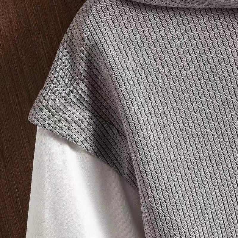 Fake Two-piece Waffle Short Sleeve Sports Set Men