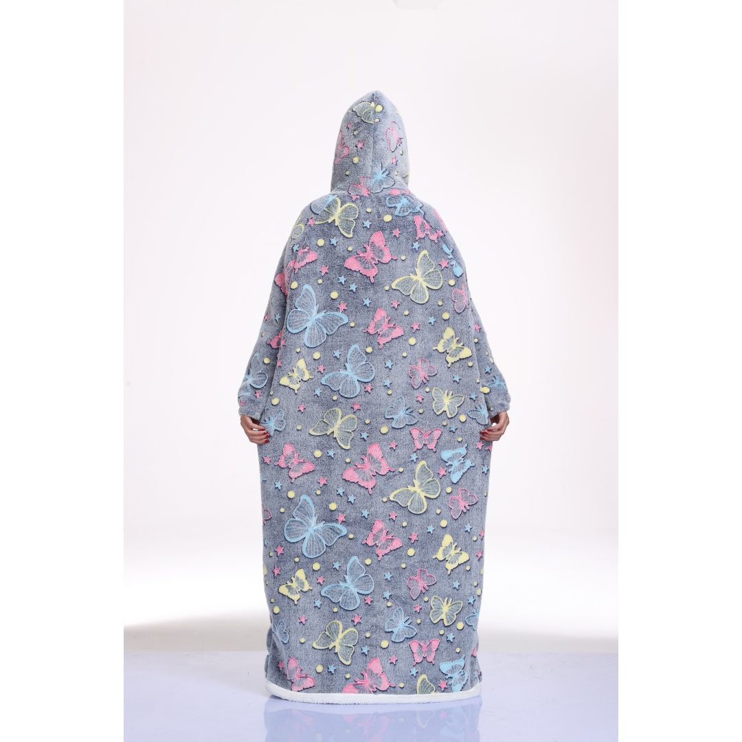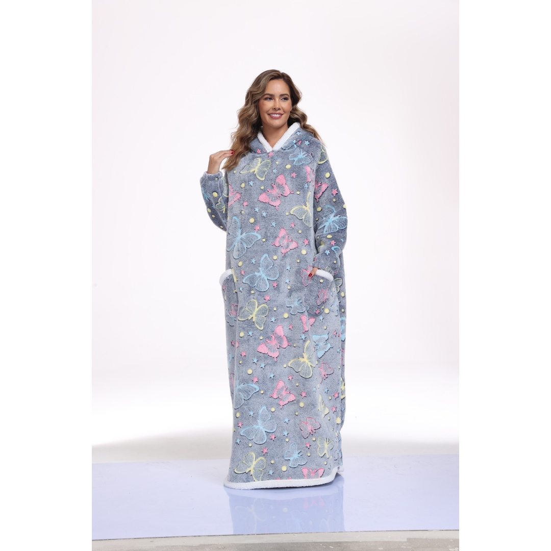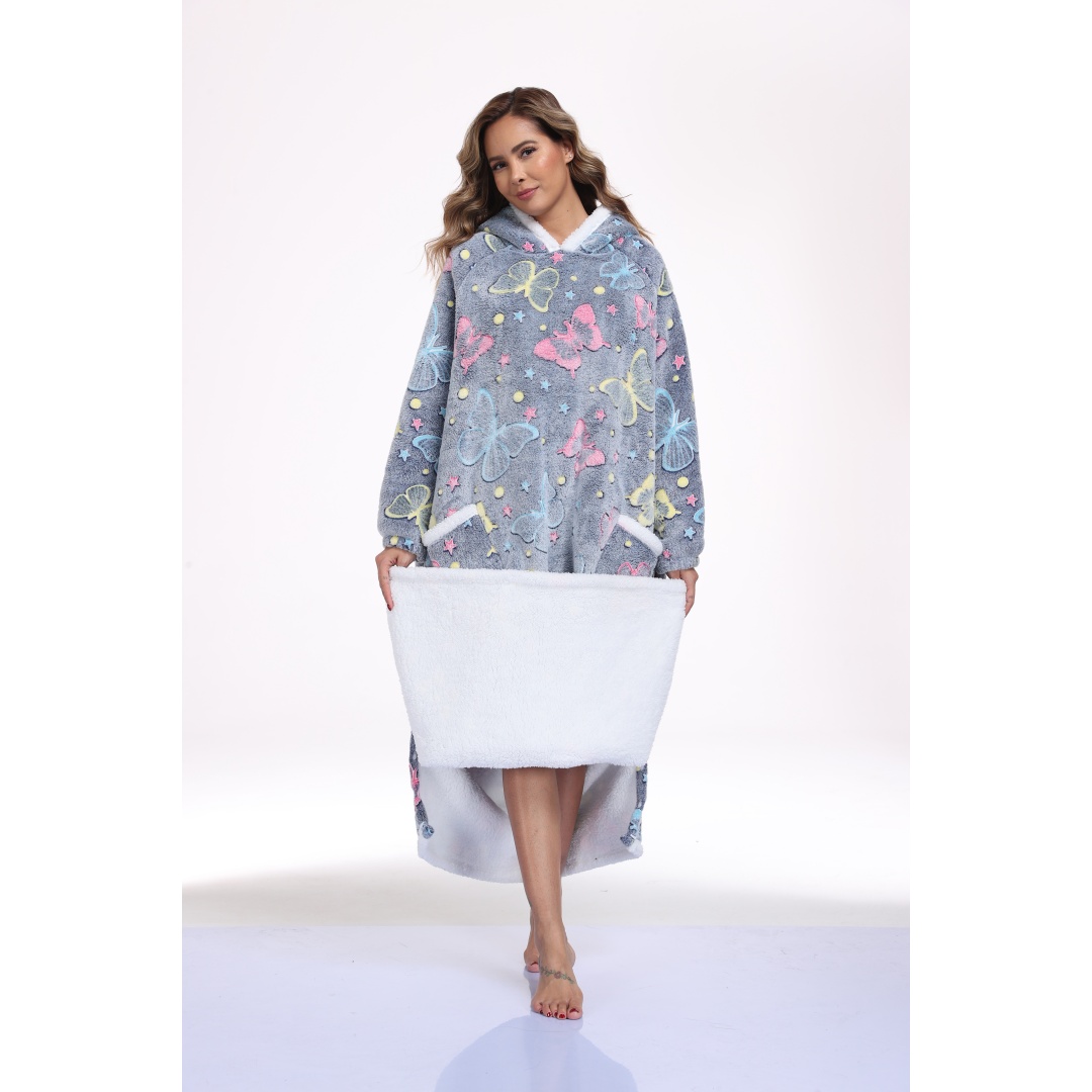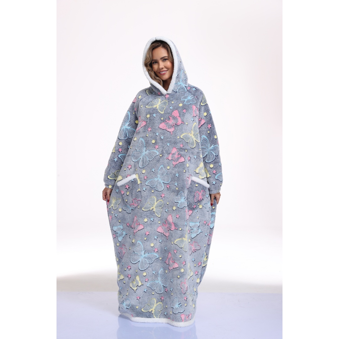 Oversized Wearable Hooded Blanket With Print Glow In The Dark Long Size-59in Sherpa Warm Sweatshirt For Women