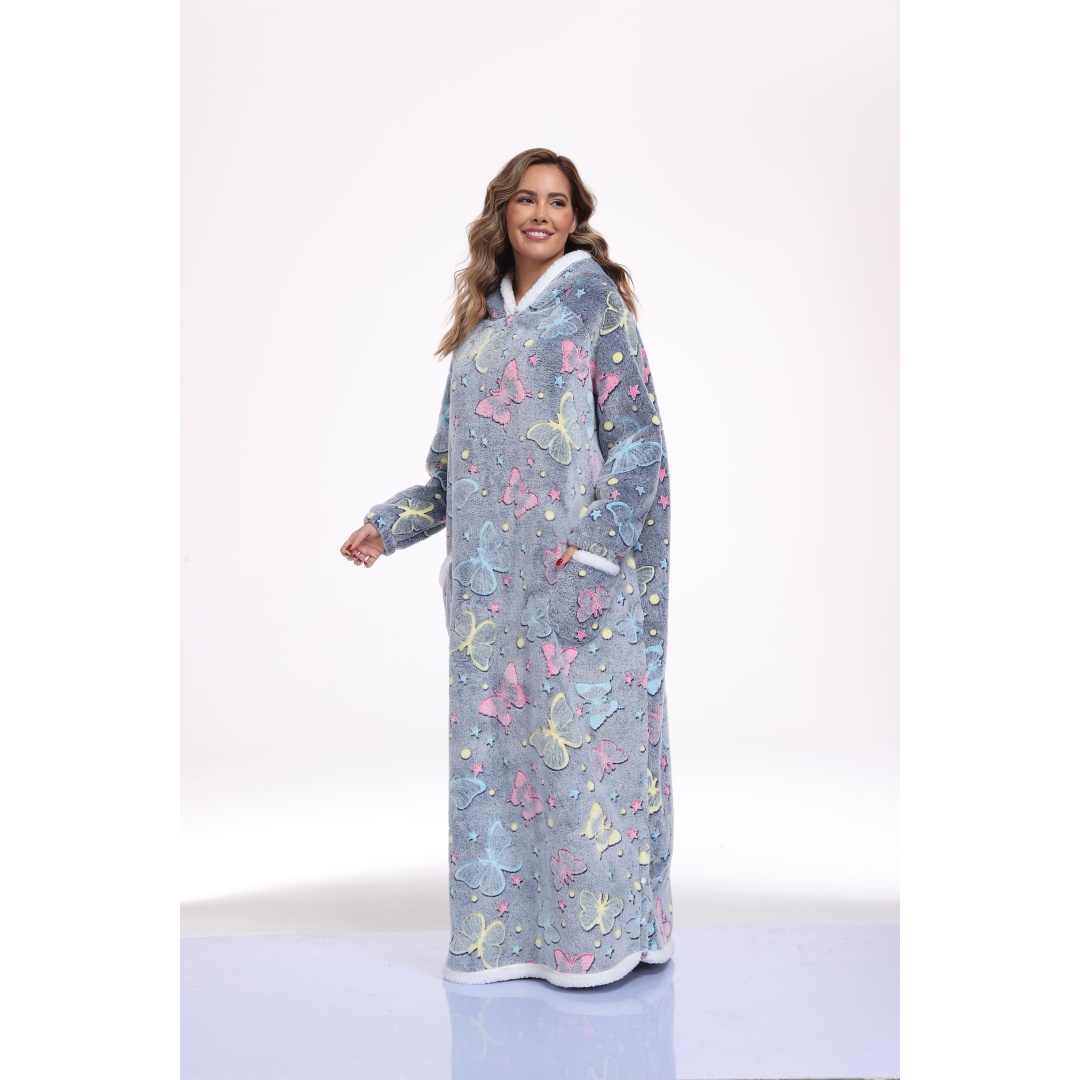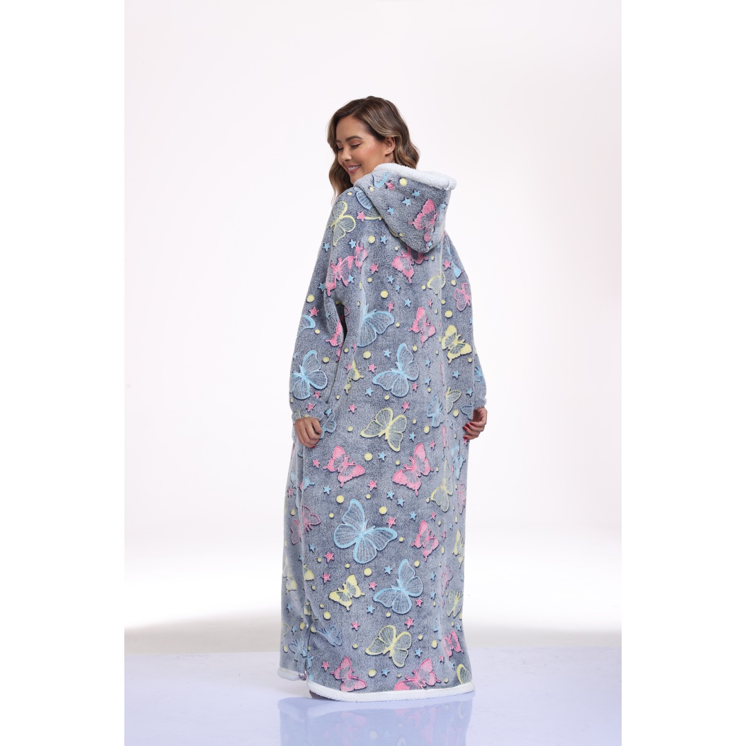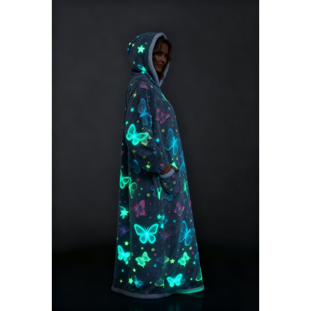 Oversized Wearable Hooded Blanket With Print Glow In The Dark Long Size-59in Sherpa Warm Sweatshirt For Women