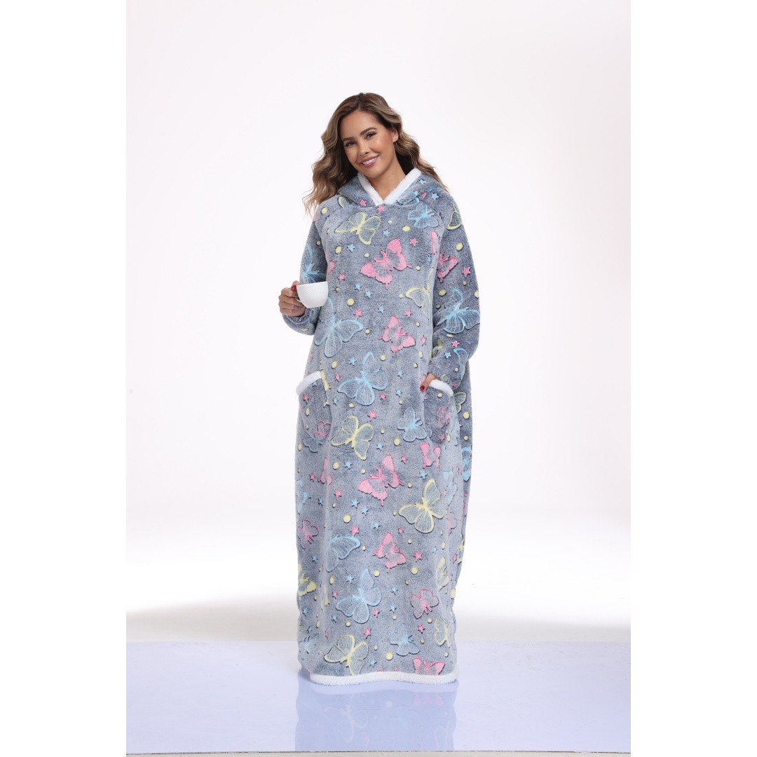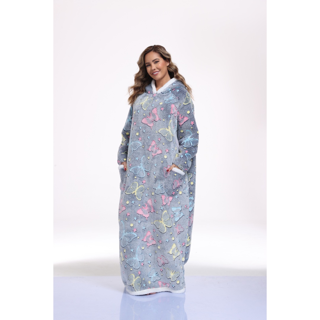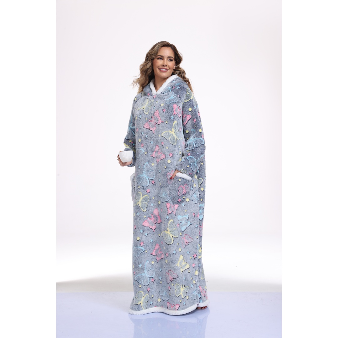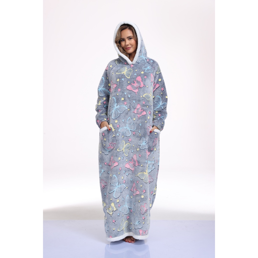 Oversized Wearable Hooded Blanket With Print Glow In The Dark Long Size-59in Sherpa Warm Sweatshirt For Women