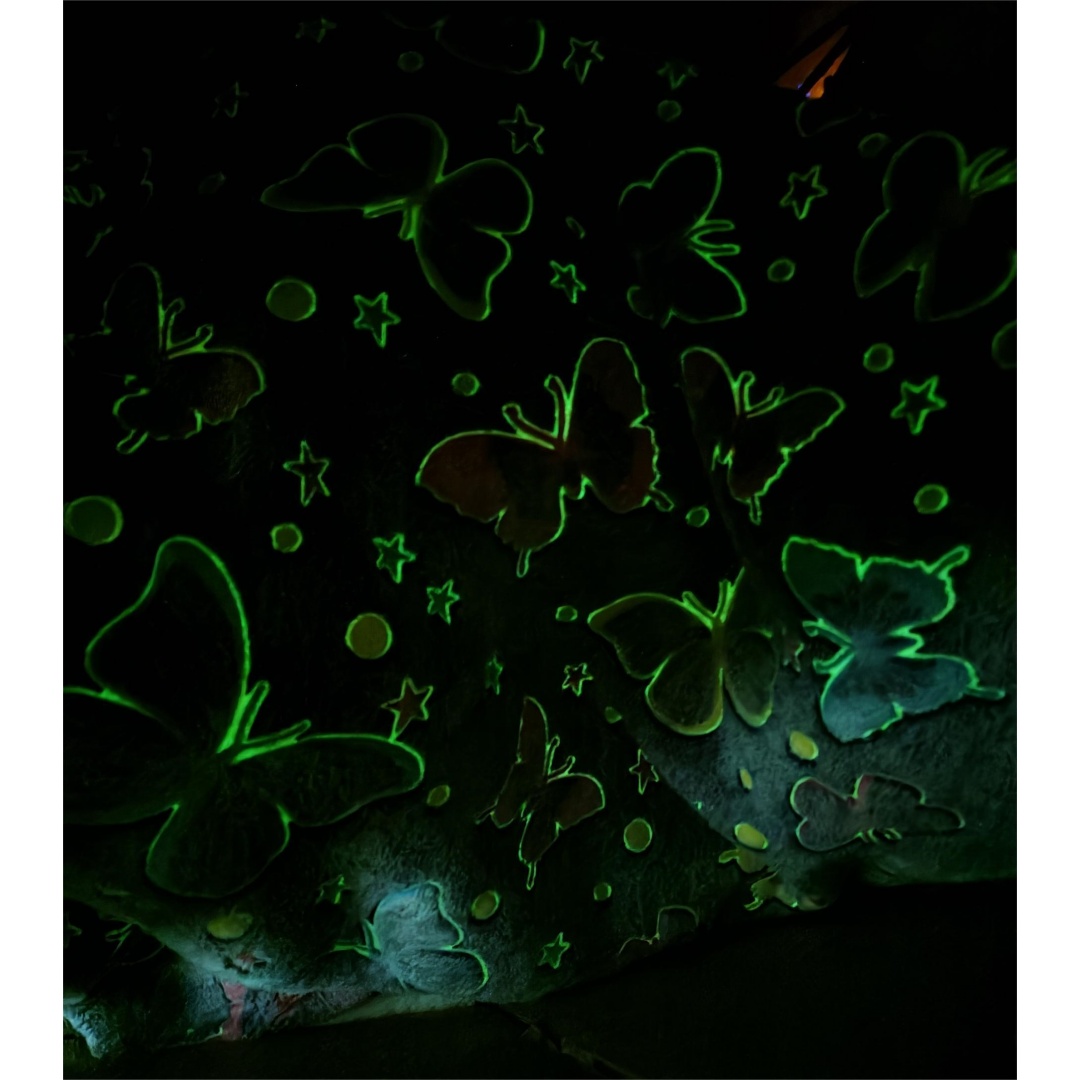 Double-Layer HeatTech & Night Glow Magic - Outer layer: luminous flannel that absorbs/store body heat; Inner layer: high-density lamb wool trapping air for 3X warmth. Glowing stars/butterflies shine for 3 hours after 10-min light exposure (NO fluorescent agents, eco-safe).