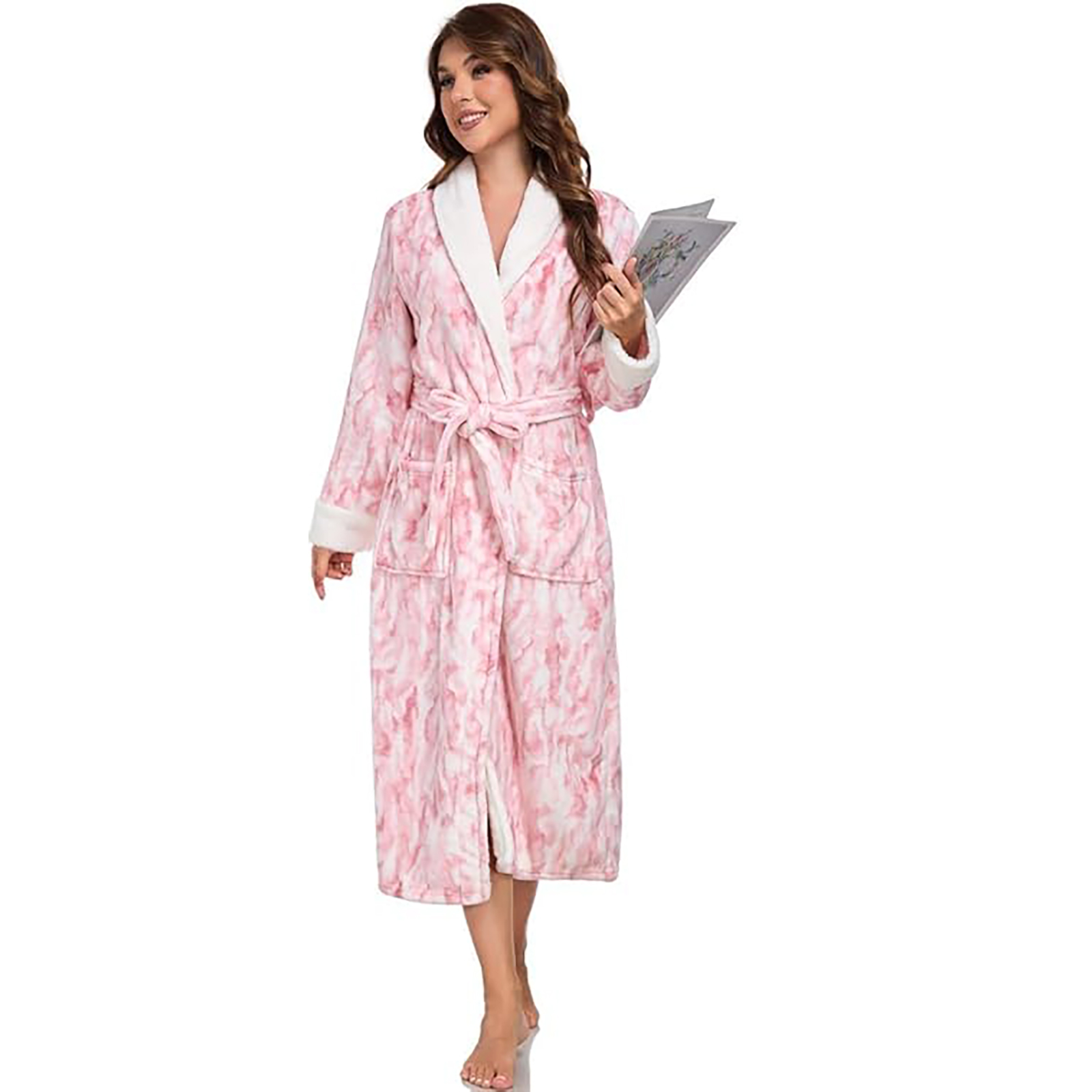 RONGTAI Plush Fleece Bathrobe For Women, Long Robe With Two Side Pockets And Belt, Warm And Cozy Fluffy Sleepwear Nightgown -Fleece White, M